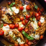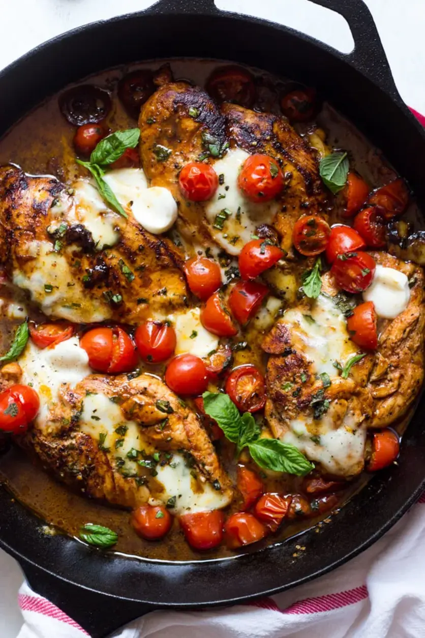 Imagine this: a golden-brown chicken breast, glistening under a sticky-sweet balsamic glaze, topped with tender grape tomatoes and blobs of creamy mozzarella that have melted into little pools of heaven. The aroma of garlic and Italian seasoning mingling with the tangy vinegar will make your kitchen smell like a trattoria. Each bite is a balance of savory, sweet, and tangy, with the fresh basil cutting through the richness. It’s the kind of easy balsamic chicken that feels fancy but takes almost no effort.