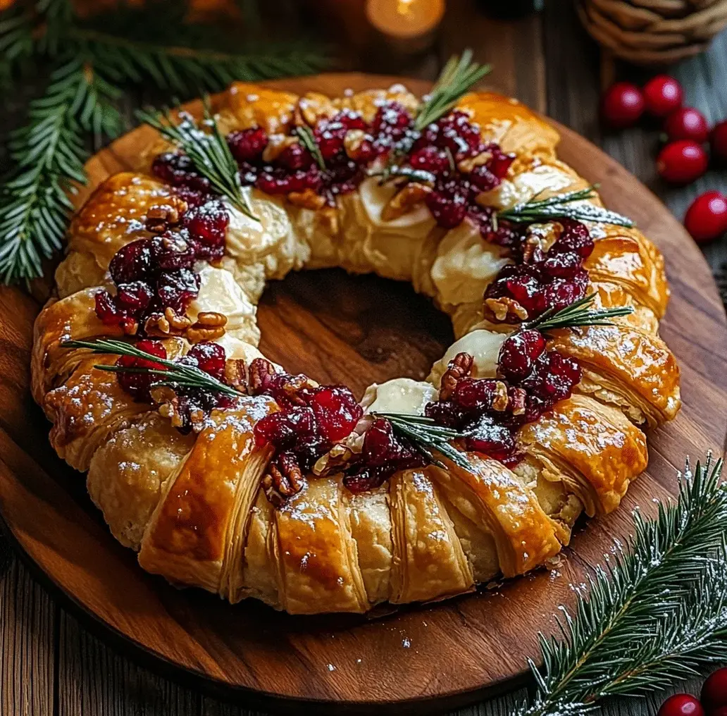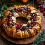 Brie Cheese and Cranberry Christmas Wreath is a stunning and delicious appetizer that combines creamy Brie cheese with sweet and tangy cranberry sauce, all wrapped in golden, flaky puff pastry.