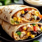 5. Assemble the Wraps: Warm tortillas, layer each with rice, chicken, veggies, corn, black beans, cotija cheese, and drizzle with crema. Wrap tightly.