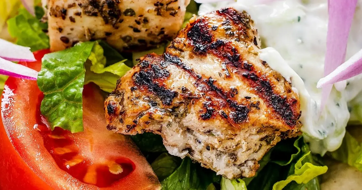 Picture this: tender chunks of chicken silkently glistening in a citrus‑oil bath, the bright levity of dark lemon zest nestled between rich Greek seasoning, and a faint roasted garlic kiss from the grill. When you lift the skewers, a golden crust clings to each bite, promising a cascade of savory juice that rains over fresh tomatoes, onions, and crisp lettuce. The aroma that spills from the grill is a carefree mix of sea‑salted air and the subtle complexity of dried oregano—just enough to transport you straight to a Greek taverna. The final dish is a medley of cool coolnd yogurt‑based tzatziki, warm pita, and a drizzle of olive oil that ties it all together.