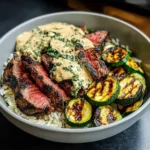 Growing up in the rolling dunes of Morocco, I learned early that a simple ingredient can become a statement when it’s treated with love and a touch of spice. New York’s farmers market lately offered me the freshest flank steak, and my Paris culinary training reminded me that the grill can turn humble cuts into things of art. That’s why I’m bringing you this grilled steak bowl, where the steak meets a velvety herb sauce and zucchini kissed by the grill—ready in minutes yet unmistakably sophisticated.
