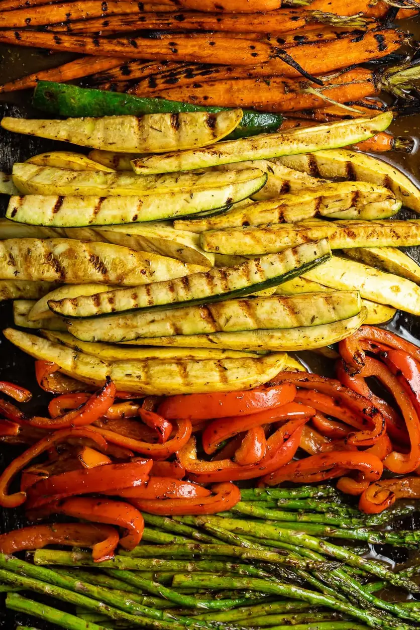 💡 mia’s Pro Tip: The carrots need a head start because they are denser. Giving them a 3–4 minute pre-grill ensures they will be tender by the time the rest of the vegetables are done. For even browning, don’t overcrowd the grill — cook in batches if necessary.