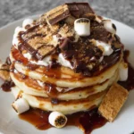 Delicious Smores Pancakes combining the flavors of smores in a fluffy pancake form, perfect for breakfast or dessert.