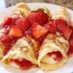 Strawberry Pie Enchiladas are a delicious dessert that combines the flavors of strawberry pie with the fun of enchiladas, drizzled with a sweet syrup.